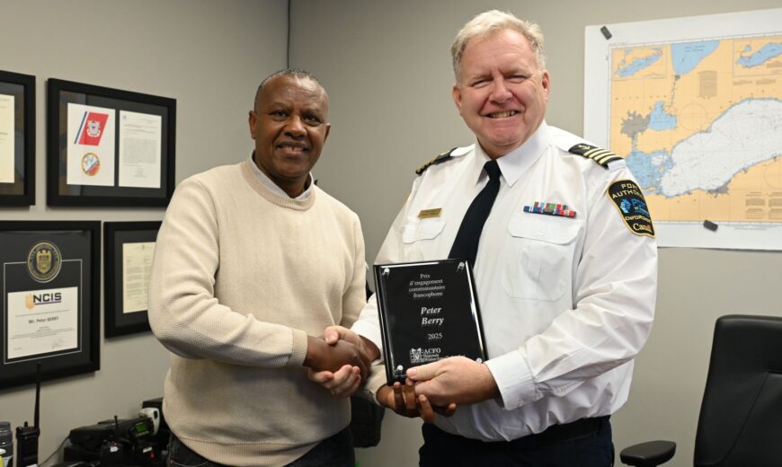 Vendredi 5 décembre, M. Peter Berry, Vice-Président et Capitaine de Port de Windsor, a reçu un trophé de la part de l’ACFO WECK pour son soutien à la communauté francophone de Windsor-Essex-Chatham-Kent. Le trophée a été remis des mains de M.André Nsengiyumva, Gestionnaire de projets au nom de Mme Yasmine Joheir, Présidente l’ACFO WECK. Cette […]